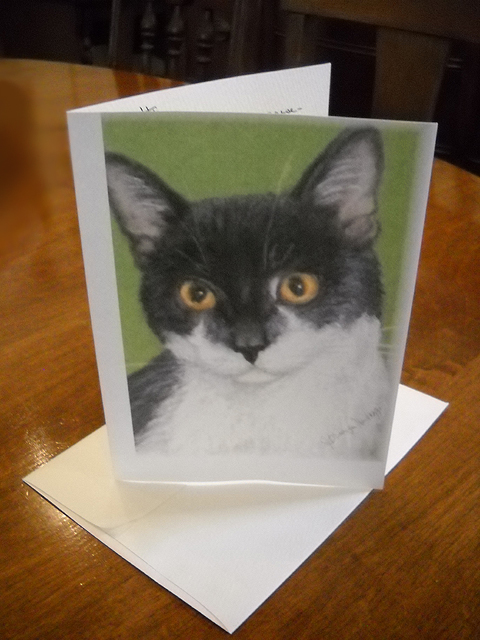 When we opened the big mailing envelope, we found this stunning card with a sweet note. (By the way, am I the only kitty without my own product line, I wonder? I shall have to discuss this with my Human.)